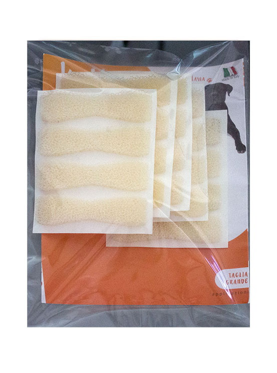 Spugne abrasive dure per la pulizia dentale dei cani.