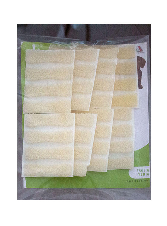 Spugne abrasive dure per la pulizia dentale dei cani.